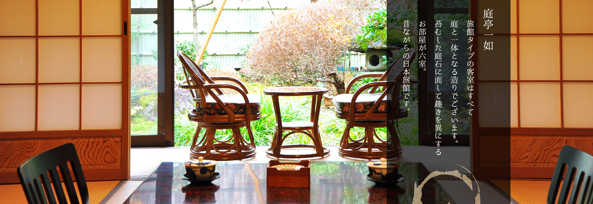 庭園に面したお部屋で季節の移り変わりを感じていただきながらゆっくり過ごしていただけます。
